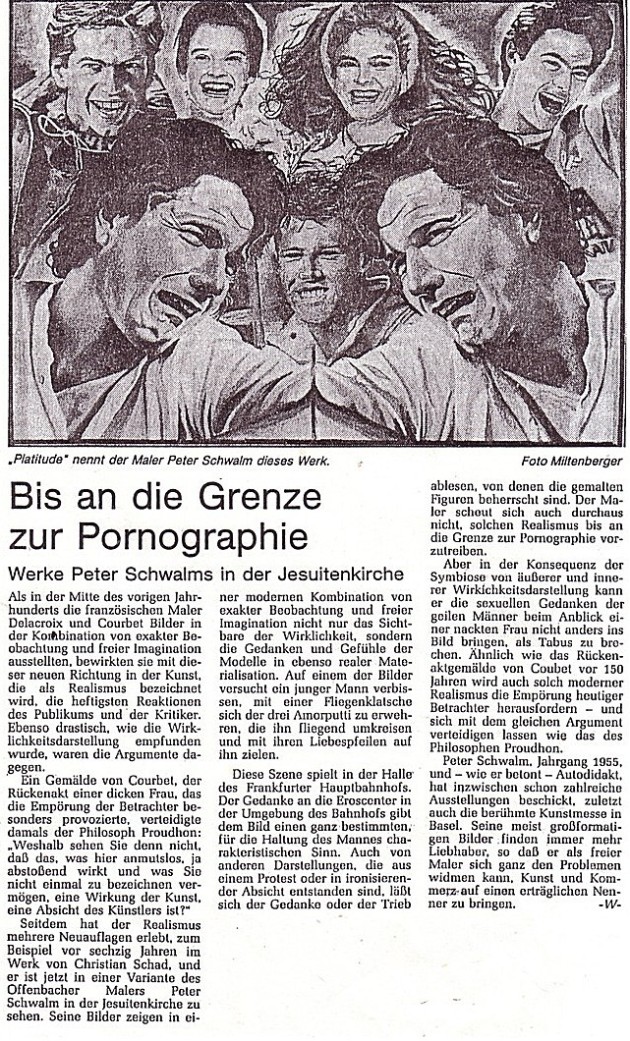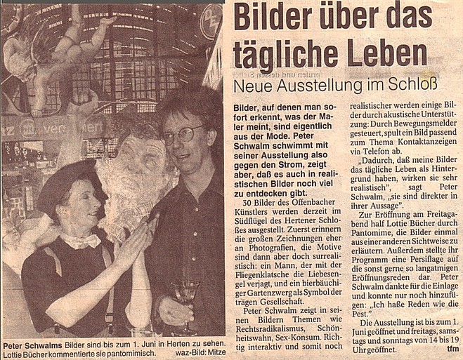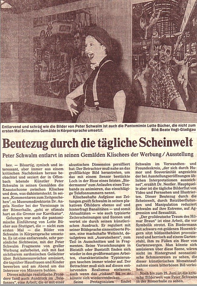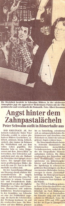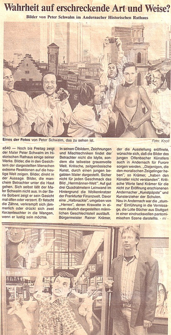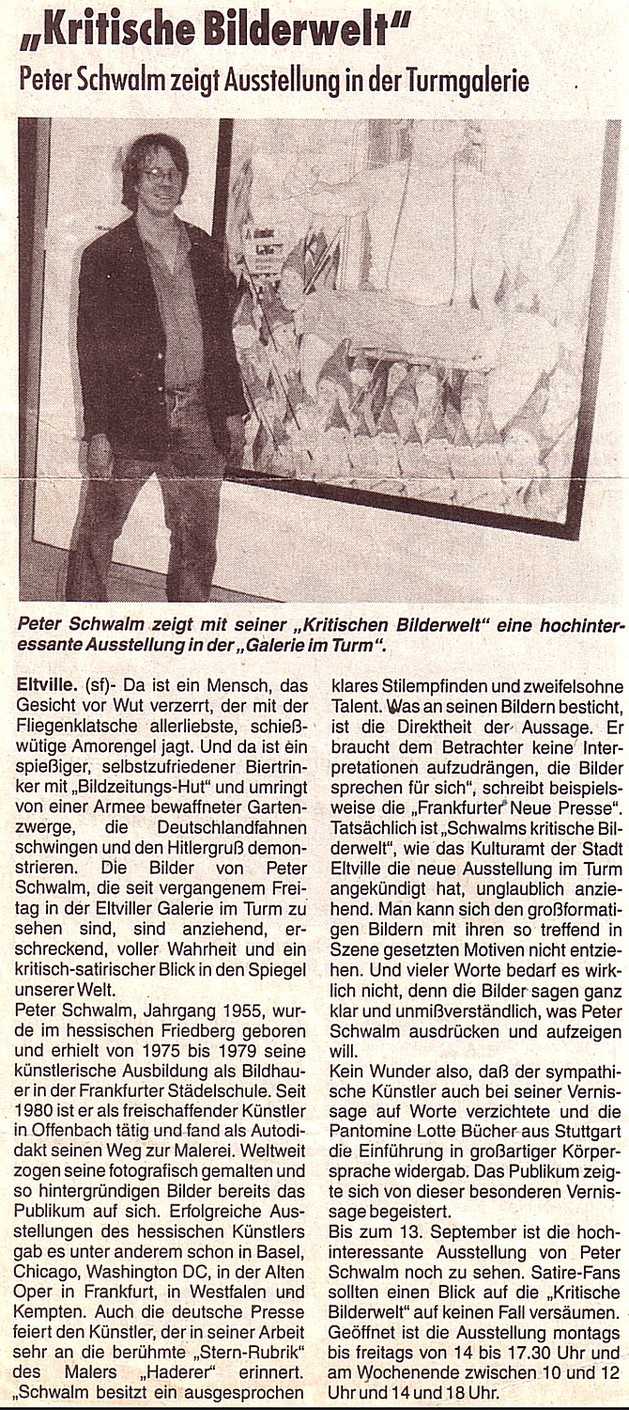 ... begeisterte Schwalm durch sein Können. Schön sind die Bilder nicht, doch sie gehen unter die Haut. Die Ausstellung ist ein Muß für jeden Kunstinterressierten, und hebt sich deutlich ab von dem, was sonst in Würzburg gezeigt wird.