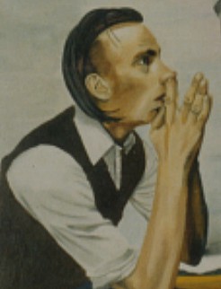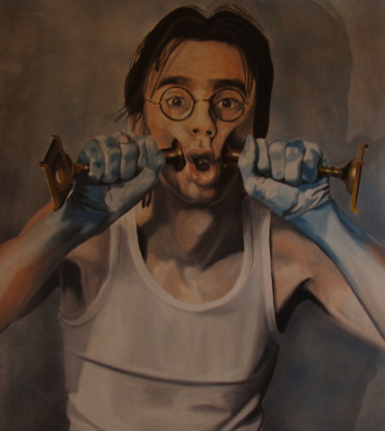 Der Depp (Öl, Acryl, Kreide auf Leinwand, auf Holz)